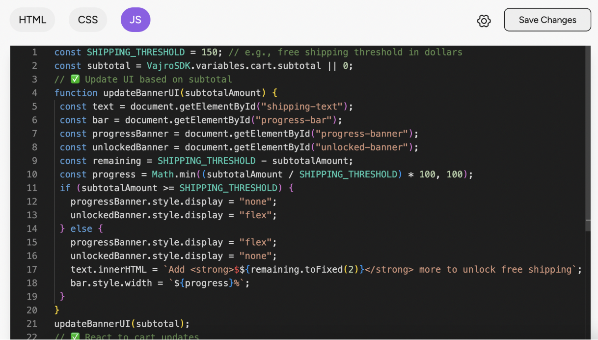 Click on Save Changes CTA to have the scripts applied for the entire block.