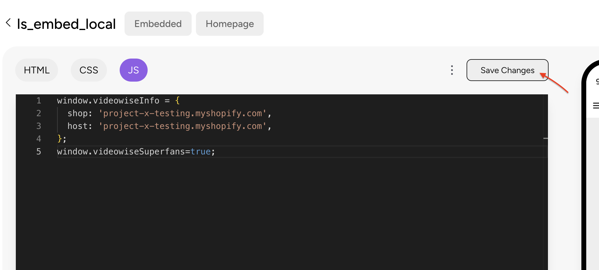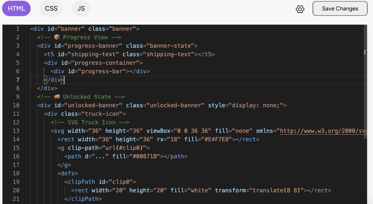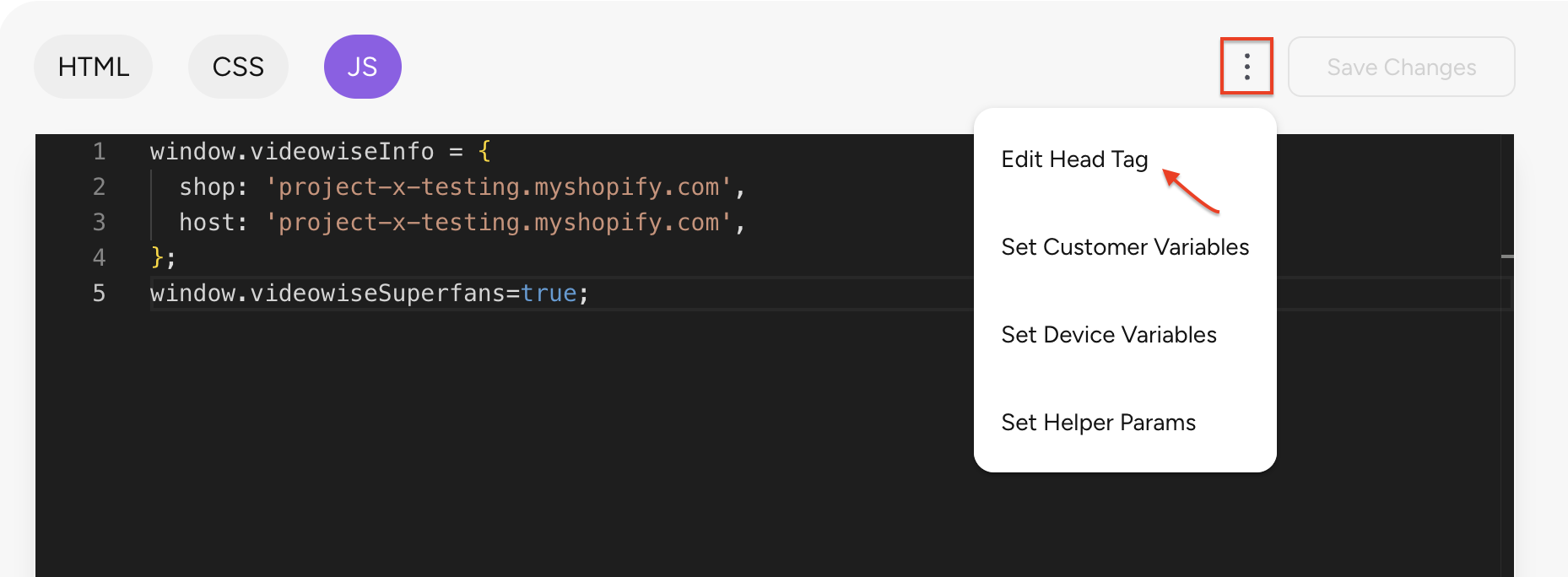 - In the Editor, click on the 3 dots left to "Save Changes" CTA and click on Edit Head tag.