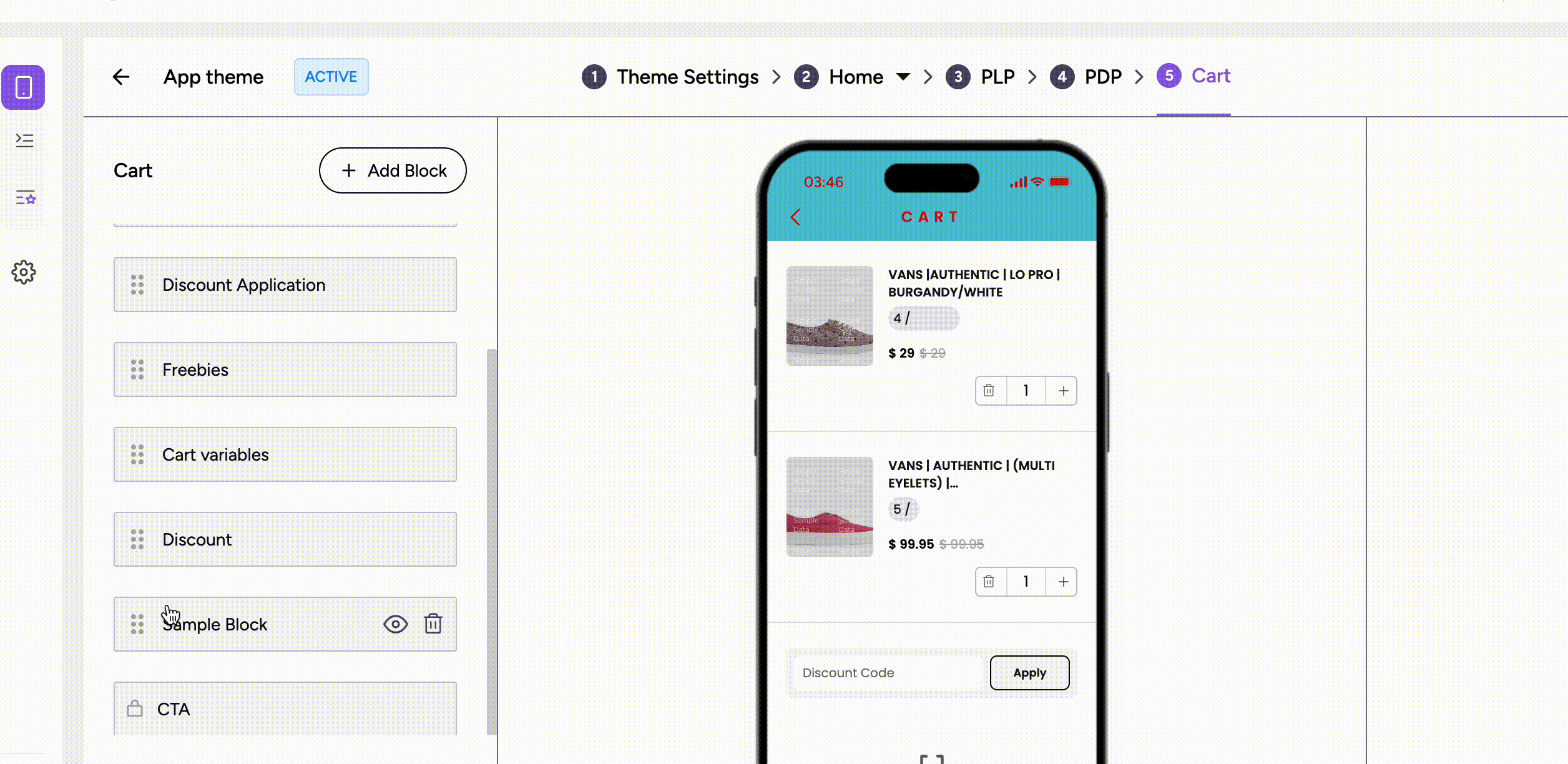 Based on the block you created, add it to the respective page for it to appear on the app.