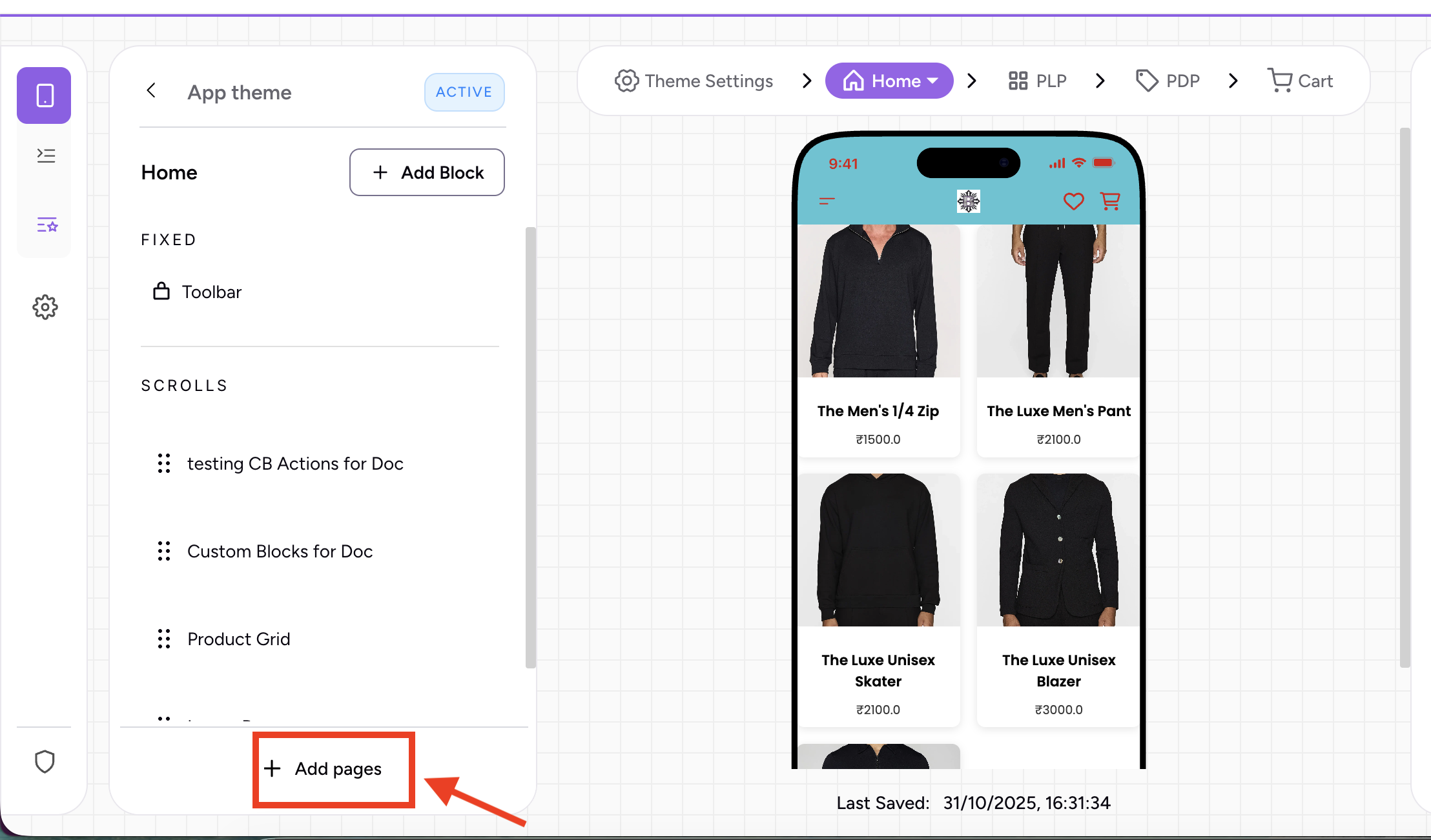 Click on Add Pages (at the bottom of the left panel)